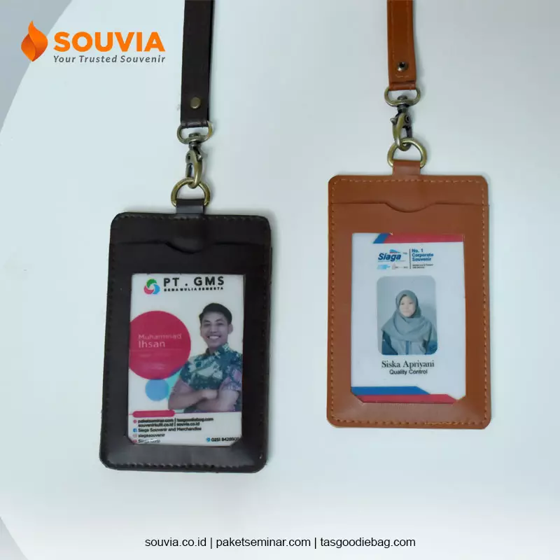 Jika Anda ingin mencari souvenir kegiatan kantor, seperti welcome kit, bisa pilih name tag. Souvenir satu ini terbuat dari bahan kulit sintetis sehingga terlihat elegan dan kokoh.
