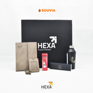 SOUVIA – Gift Set Kantor Modern dengan buku agenda merupakan pilihan souvenir yang elegan, fungsional, dan strategis untuk branding perusahaan.