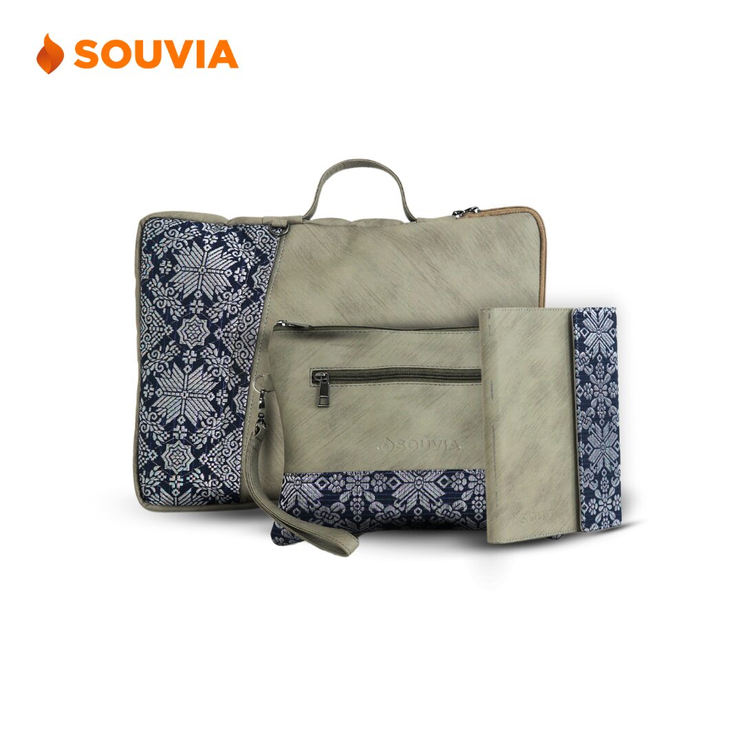 Sebagai pelengkap, Pouch “Kurra Nic” dari Pesona Blue Ethnic Series dirancang dengan keanggunan yang sama, menonjolkan motif batik tenun Palembang yang memancarkan keindahan budaya Nusantara. Ideal untuk menyimpan aksesoris kecil dan barang penting, Pouch ini menjadi simbol dari keanggunan dan fungsionalitas, menggabungkan desain modern dengan sentuhan tradisional yang memikat. Dengan Pesona, SOUVIA menghadirkan lebih dari sekadar produk, tetapi sebuah pernyataan gaya hidup yang menghormati dan memuliakan kebudayaan.
