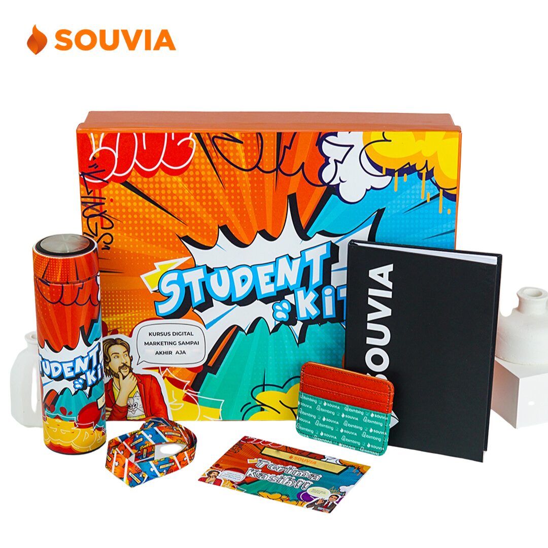 Colorful Kit solusi sempurna dari kolaborasi antara SOUVIA dan Dibimbing.id. Dirancang khusus untuk menambah semangat belajar, kit ini terdiri dari berbagai produk menarik seperti Box Full Printing yang elegan, Lanyard dengan desain yang unik, Tumbler bebas BPA, dan E-money/card holder yang sangat berguna. Penambahan Greeting Card untuk memberikan pesan motivasi dan semangat, dan Tote Bag d300/paper bag yang elegan.
