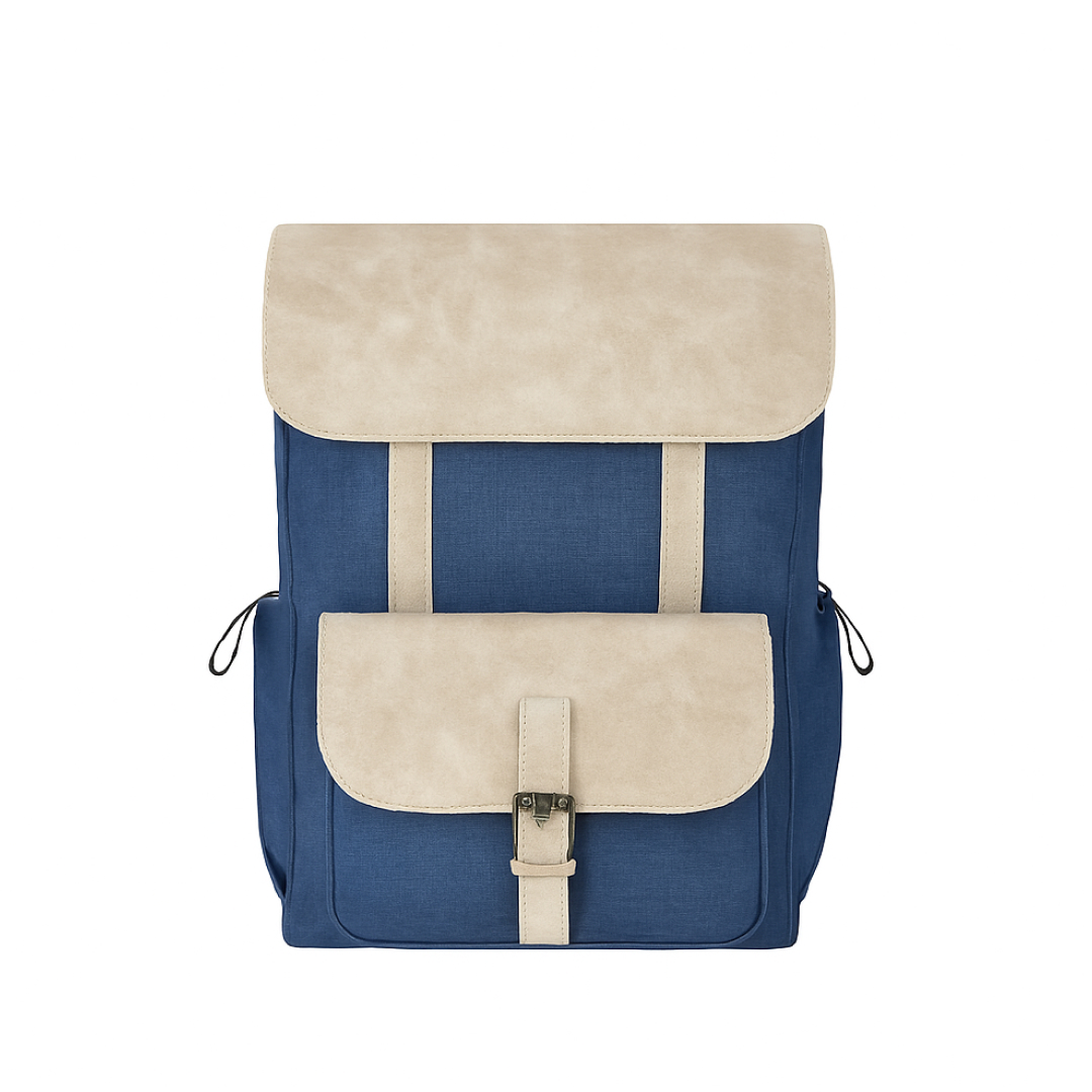 Tas backpack laptop dengan paduan bahan linen dan kulit sintetis