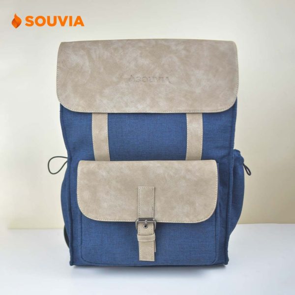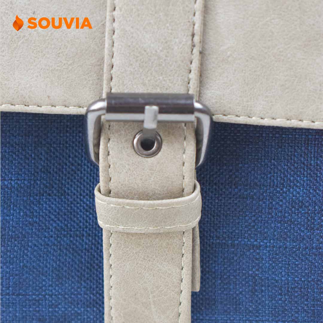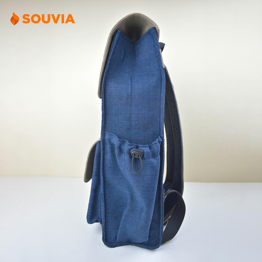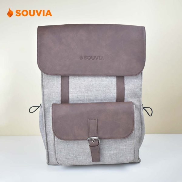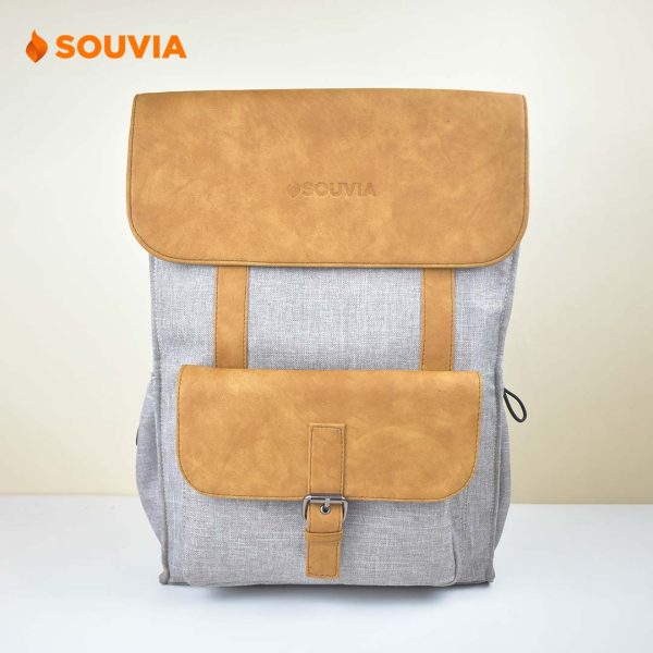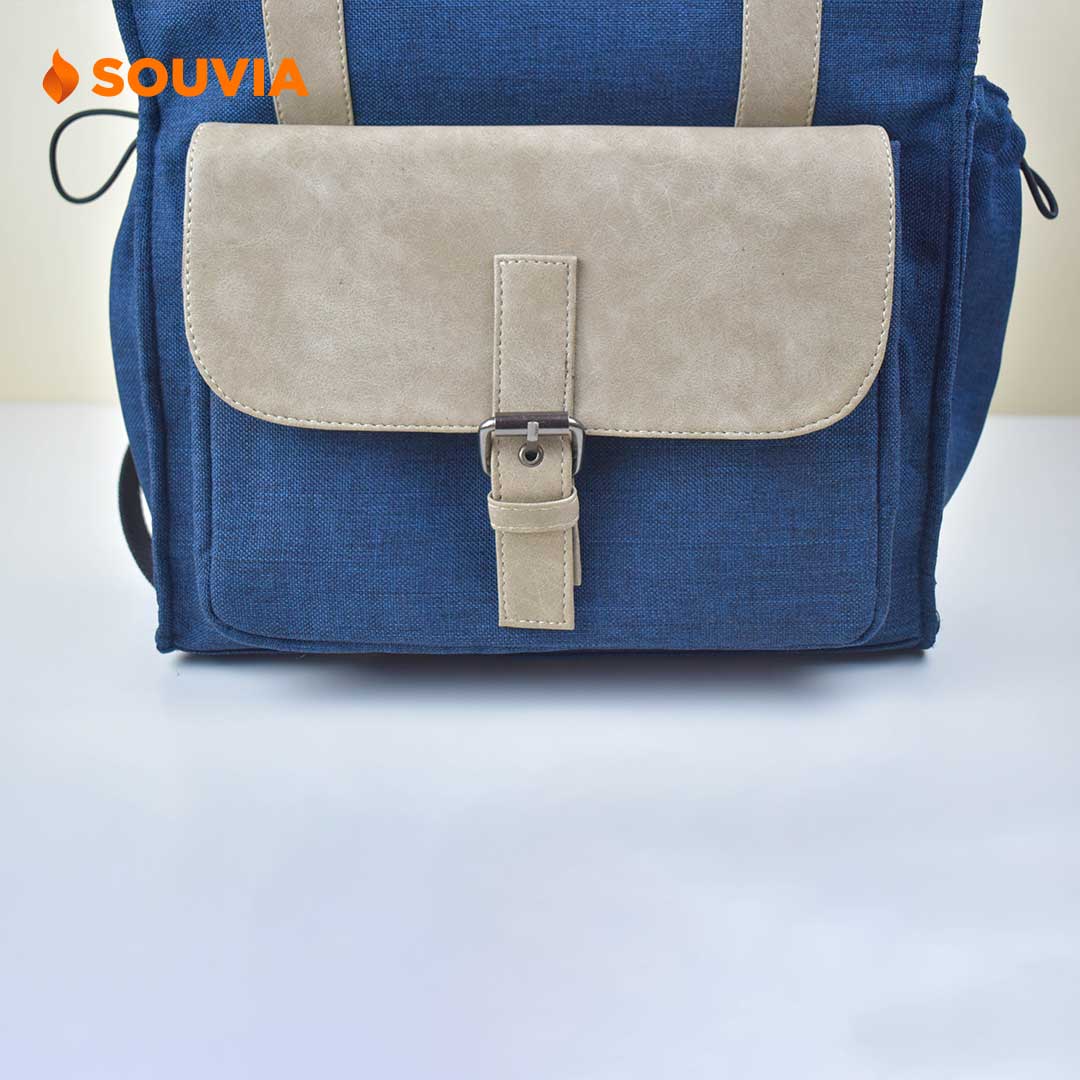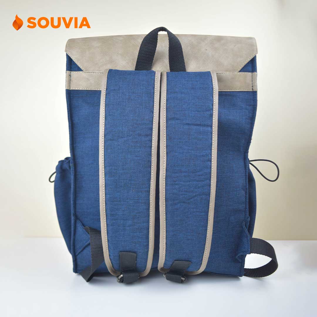 Tas backpack laptop dengan paduan bahan linen dan kulit sintetis