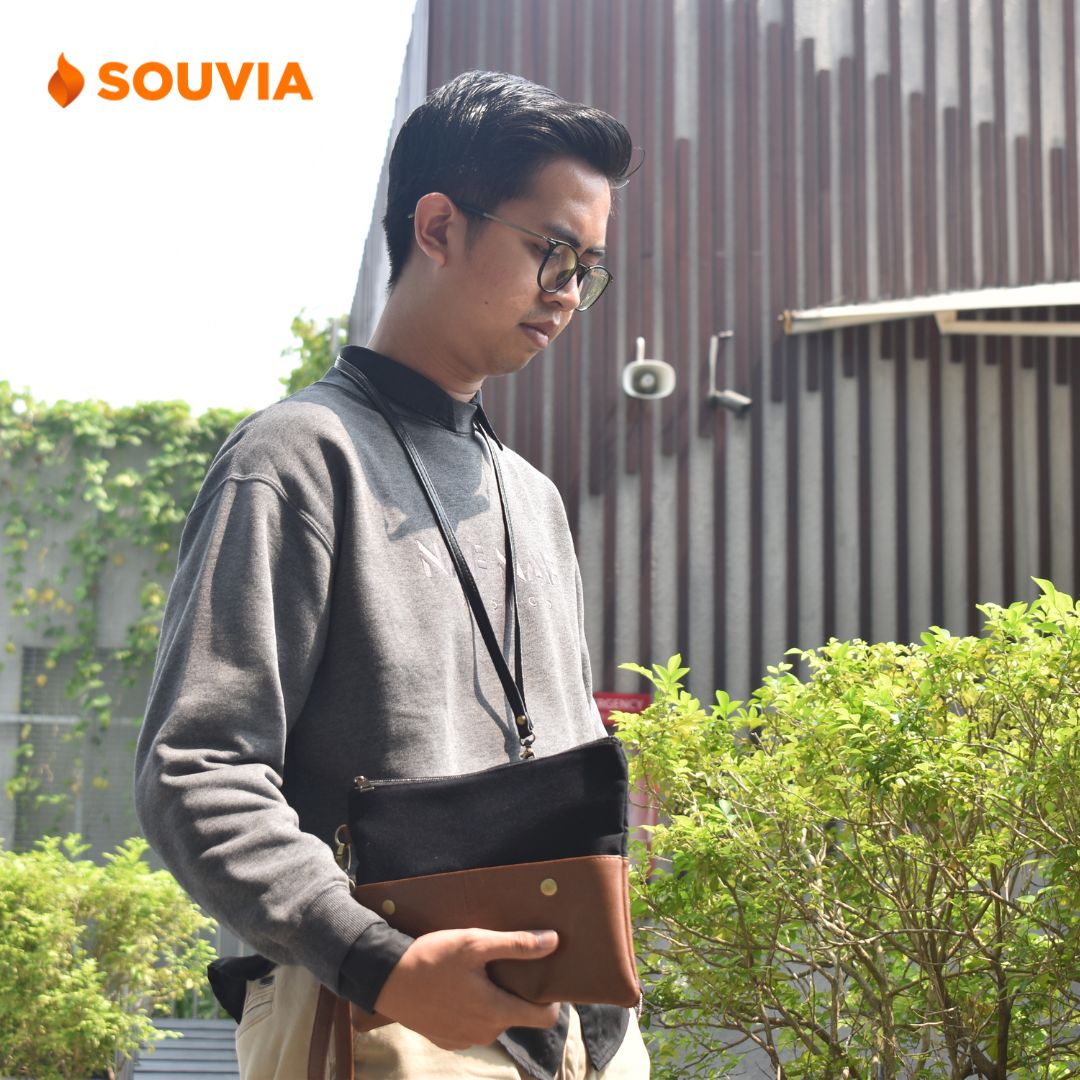 2. Warna kanvas putih/hitam dipadukan dengan kulit sintesis berwarna cokelat