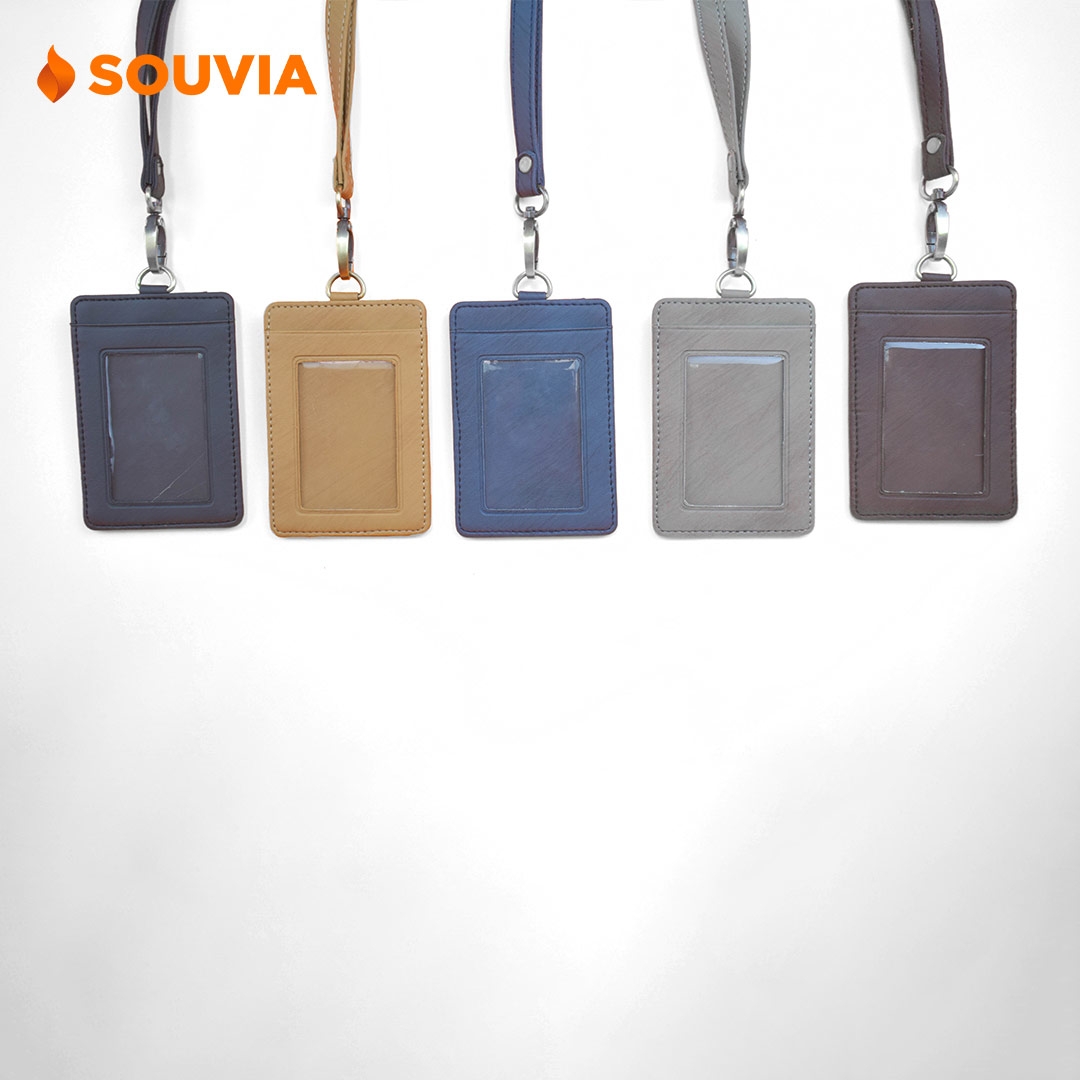 Holder ID card untuk name tag kantor berbahan kulit sintetis dengan slot kartu dibagian depan dan belakang.