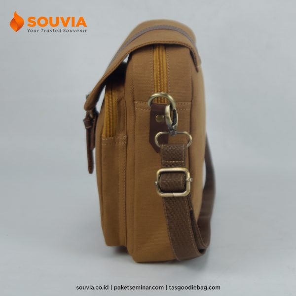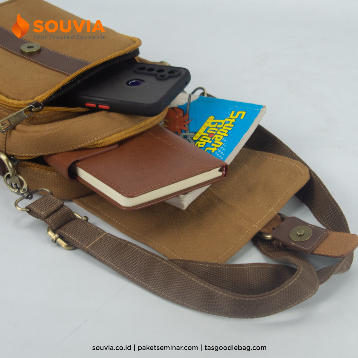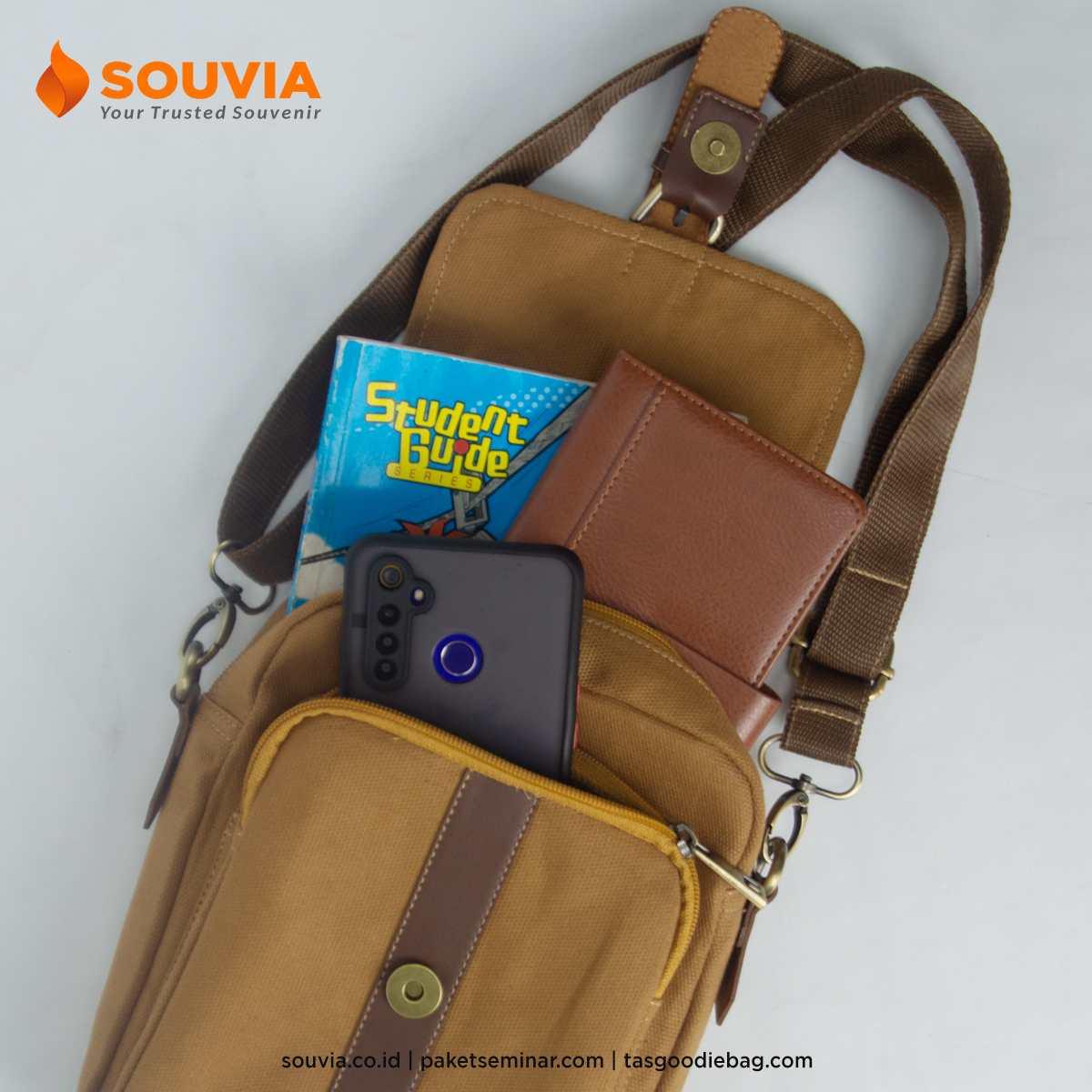 Tas selempang ukuran kecil banyak digunakan saat bepergian untuk menyimpan barang-barang berharga untuk mempermudah keluar-masuk barang. Pocky, tas selempang bahan kanvas ini dapat memuat dompet, agenda kecil, gadget, dan alat tulis. Dengan desain yang sederhana, tas selempang Pocky memberikan kesan trendi dan tidak ketinggalan zaman saat dipakai kemanapun dan kapanpun. Dilengkapi dengan 2 kompartemen beresleting dan bertutup magnet, tas selempang ini juga terdapat aksen list kulit sintetis di bagian tengah yang membuat desainnya semakin premium. Desain tersebut membuat tas dapat dipakai sebagai tas selempang wanita dan tas selempang pria. Desain unisex tersebut sengaja dibuat agar tas dapat dijadikan tas souvenir seminar, tas souvenir perusahaan, tas souvenir promosi, hingga tas souvenir kantor. Peruntukannya sebagai souvenir tersebut membuat tas ini dapat di branding dengan logo perusahaan, instansi, maupun acara. Branding tersebut dapat menguntungkan karena saat pengguna memakainya, orang lain dapat melihat logo perusahaan, instansi, maupun acara sehingga meningkatkan exposure Anda. Jangan khawatir, di setiap pemesanan, harga tas selempang sudah termasuk dengan jasa branding cetak logo. Selain tas selempang kanvas, tas selempang SOUVIA mempunyai beberapa model dengan bahan berbeda lainnya. Model tas selempangnya antara lain tas selempang kulit asli, tas selempang kulit sintetis, dan tas selempang D600. Menginginkan tas promosi untuk acara Anda? Konveksi tas SOUVIA siap melayani pesanan Anda. Informasi lebih lanjut mengenai produk ini, Anda bisa langsung menghubungi sales executive SOUVIA sekaligus mengetahui lebih banyak produk souvenir SOUVIA.