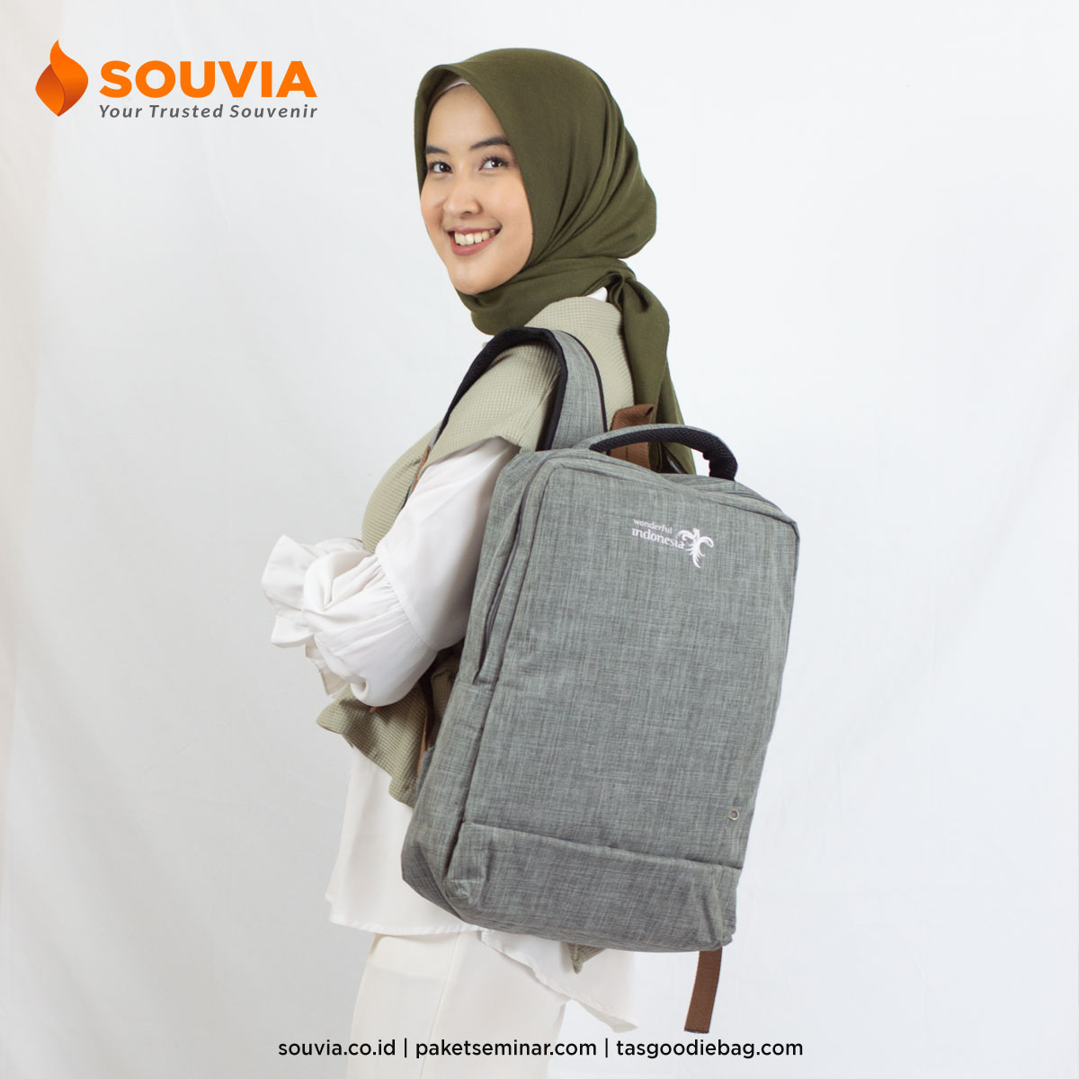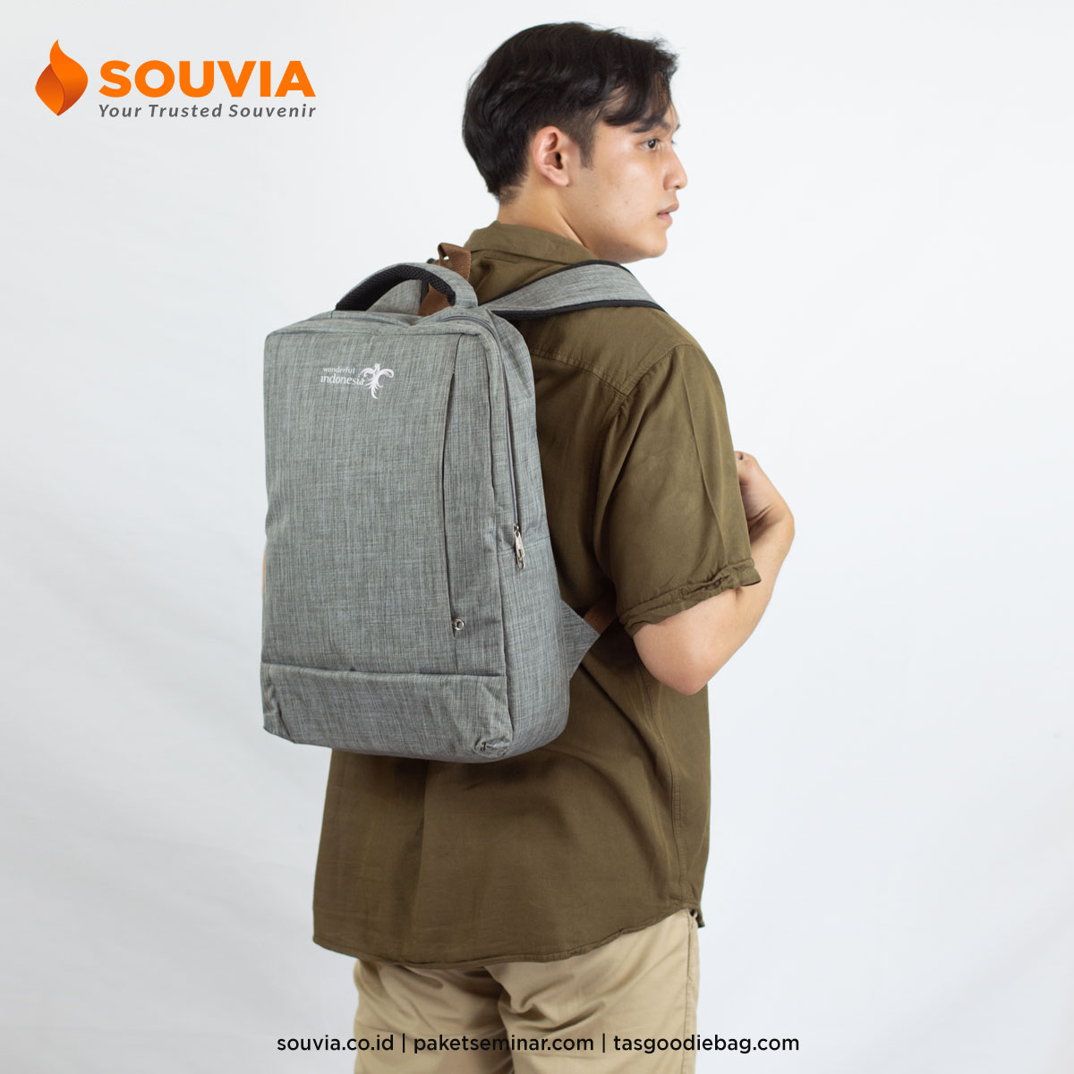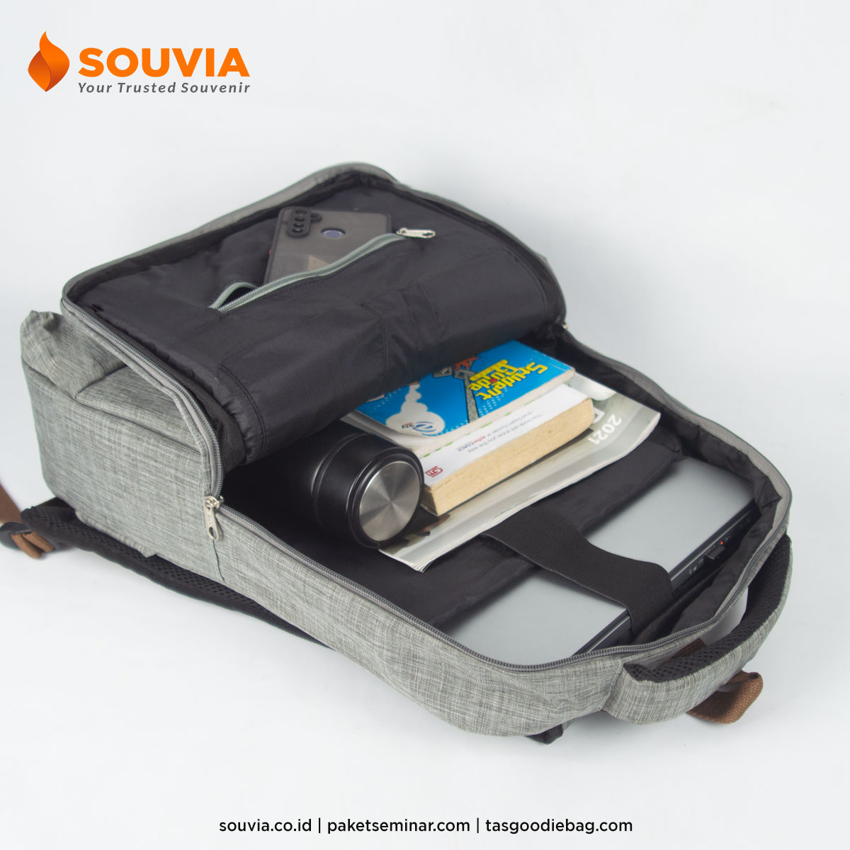 Konsultasikan kebutuhan backpack custom perusahaan Anda bersama SOUVIA dan wujudkan merchandise eksklusif yang bermanfaat sekaligus berkesan!